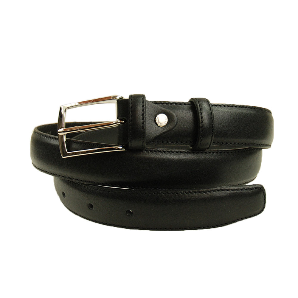 Kapea musta pukuvyö viimeistelee juhlapukeutumisen. Musta nahkainen vyö on täydellinen valinta mustan puvun ja mustien nahkakenkien rinnalle.